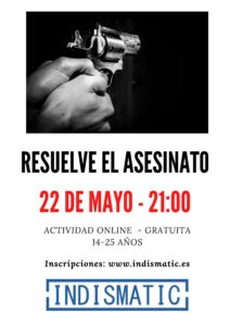 Desde la asociación Indismatic hemos organizado una actividad enfocada a jóvenes de entre los 14 a los 25 años. Dicho evento tratará de participar en una investigación online donde habrá que resolver un asesinato a través de diversas pistas, accediendo a la documentación facilitada, vídeos y redes sociales.